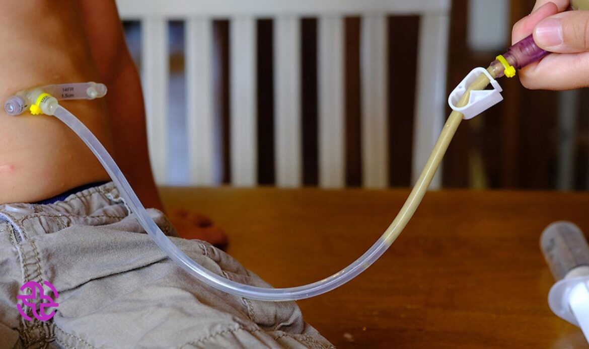 آب، سرنگ مخصوص غذا، غذای آماده شده، بیمار را در وضعیـت نشسته یا روی پهلوی راست قرار دهید. ابتدا دست ها را بشویید، سپس با سرنگ غذا محتـویـات داخـل معده را بکشید. اگر بیشتر از ١٠٠ سی سی بود، غذادهی را به ١ تا ٢ ساعت بعد موکول کنید. در صورت تکرار به پزشـک اطـلاع دهید.